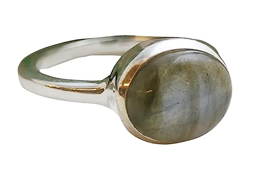 Anello in argento sterling con pietra preziosa labradorite (US Size 7 / Diameter 17.3 / EU 54)